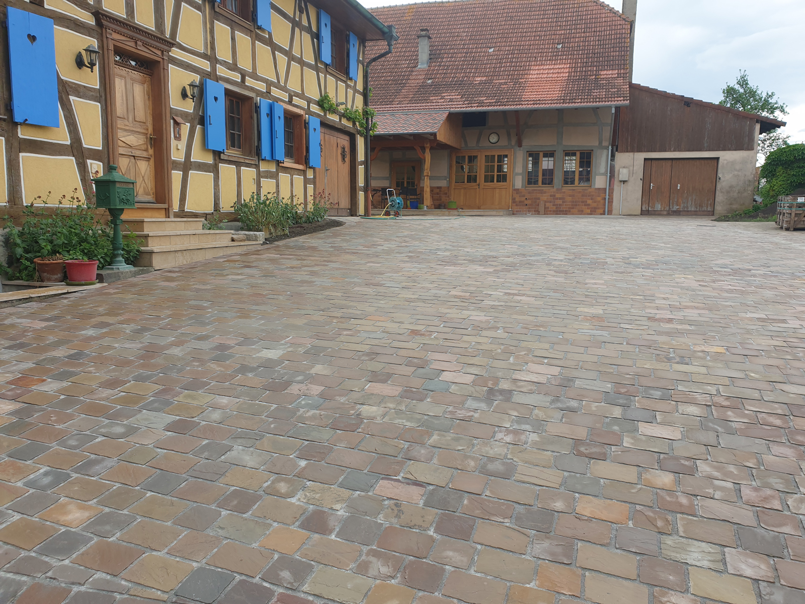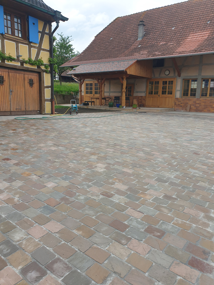 En pavage, il y a des règles à respecter, pour que l'ouvrage soit non seulement beau, mais aussi résistant dans le temps. Ainsi, que l'on pave une rue ou une place, ouverte à toute circulation, ou bien une cour, une entrée de garage ou la terrasse d'un particulier, l'idéal est de poser les pavés serrés et sur sable lavé de rivière avec joints sable.