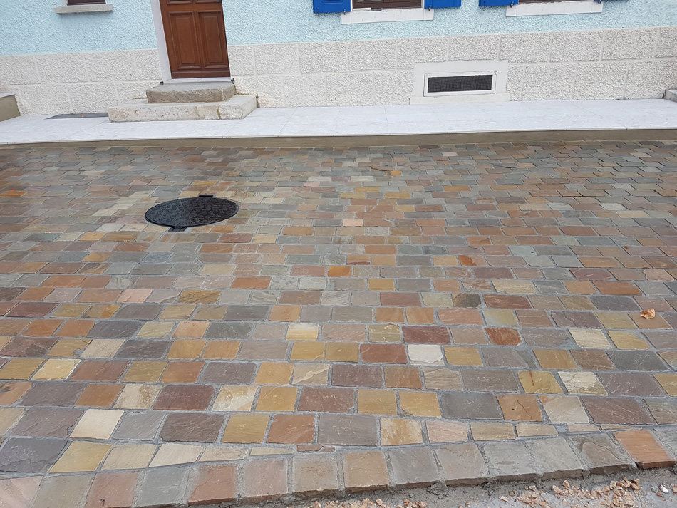 En pavage, il y a des règles à respecter, pour que l'ouvrage soit non seulement beau, mais aussi résistant dans le temps. Ainsi, que l'on pave une rue ou une place, ouverte à toute circulation, ou bien une cour, une entrée de garage ou la terrasse d'un particulier, l'idéal est de poser les pavés serrés et sur sable lavé de rivière avec joints sable.