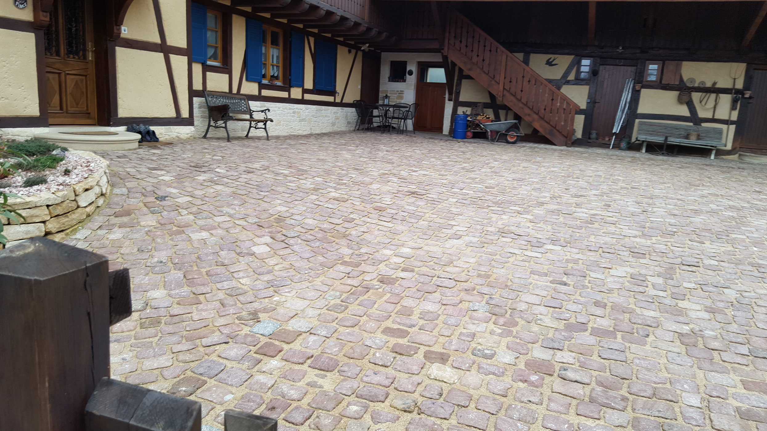 En pavage, il y a des règles à respecter, pour que l'ouvrage soit non seulement beau, mais aussi résistant dans le temps. Ainsi, que l'on pave une rue ou une place, ouverte à toute circulation, ou bien une cour, une entrée de garage ou la terrasse d'un particulier, l'idéal est de poser les pavés serrés et sur sable lavé de rivière avec joints sable.